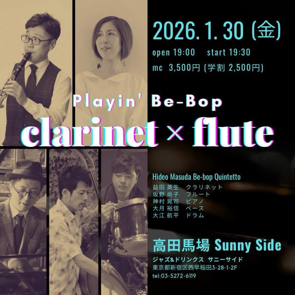 『トランペットとサックスでよく聴く、ゴリゴリのハードバップをクラリネットとフルートで演ったらどんな感じだろう?』な企画ライブ第2弾です!!