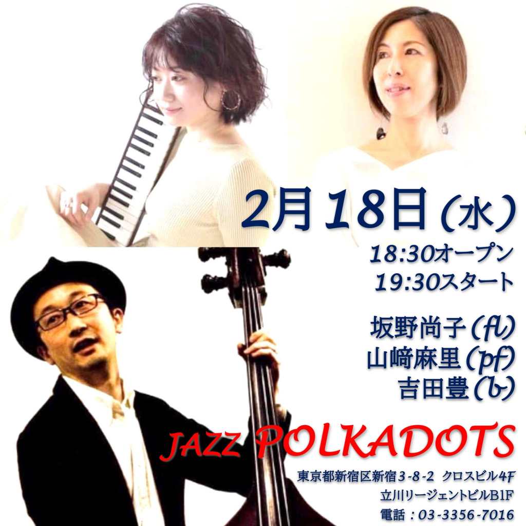 アンサンブルやグルーヴも回を重ねてギュッと良い感じになってきているように感じます。ジャズジャイアンツの名曲、ジャズメンオリジナル、フルートらしからぬ骨太な選曲とグッとくるバラード、ブラジル物も織り交ぜつつ、毎回熱くカラフルにお届けしております!