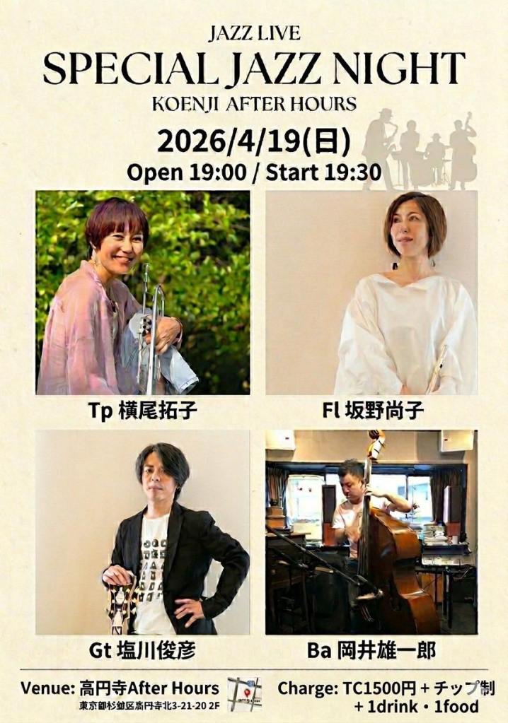 19:00オープン 19:30スタート 2ステージ TC¥1500 MC¥投げ銭