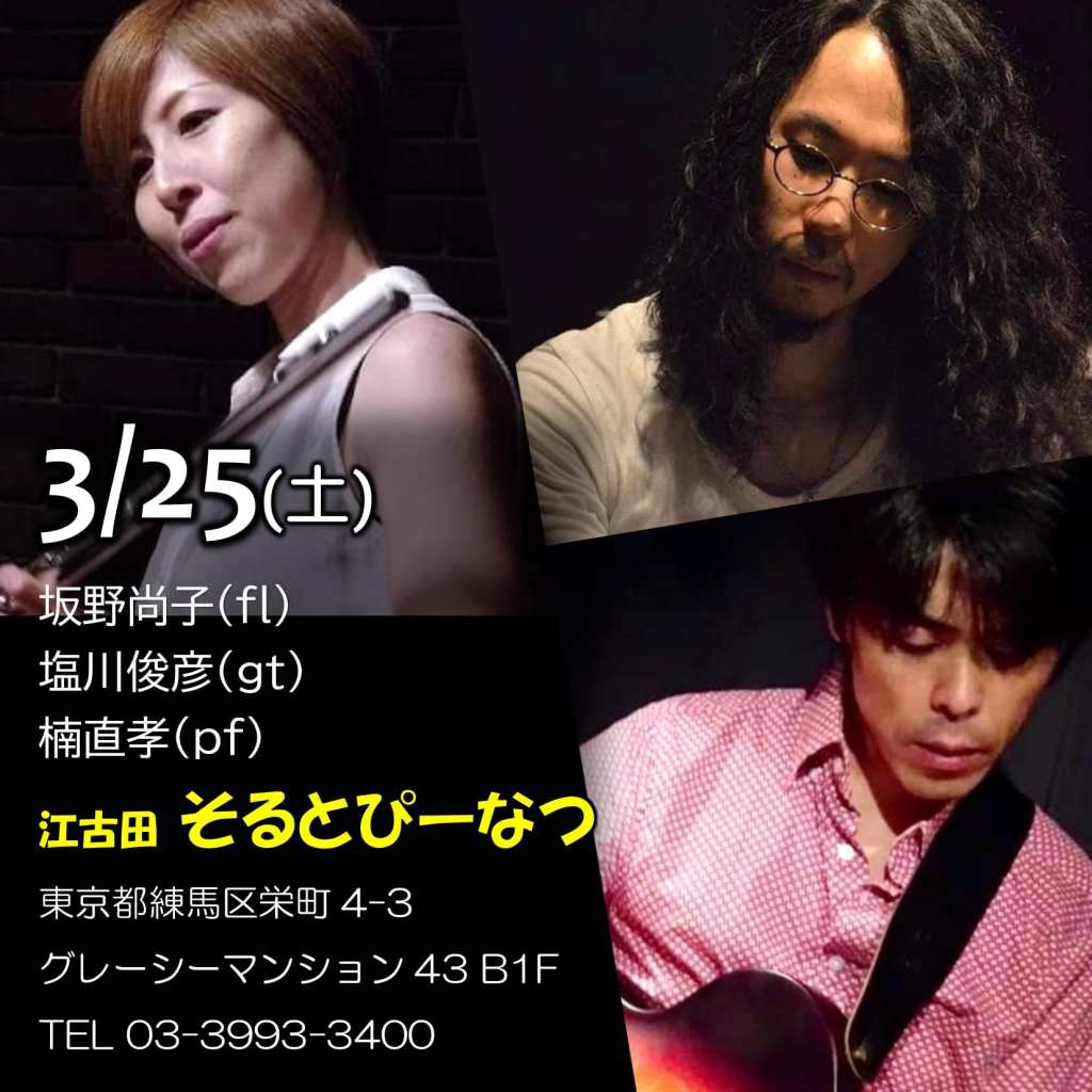 坂野尚子(fl) 塩川俊彦(gt) 楠直孝(pf)
