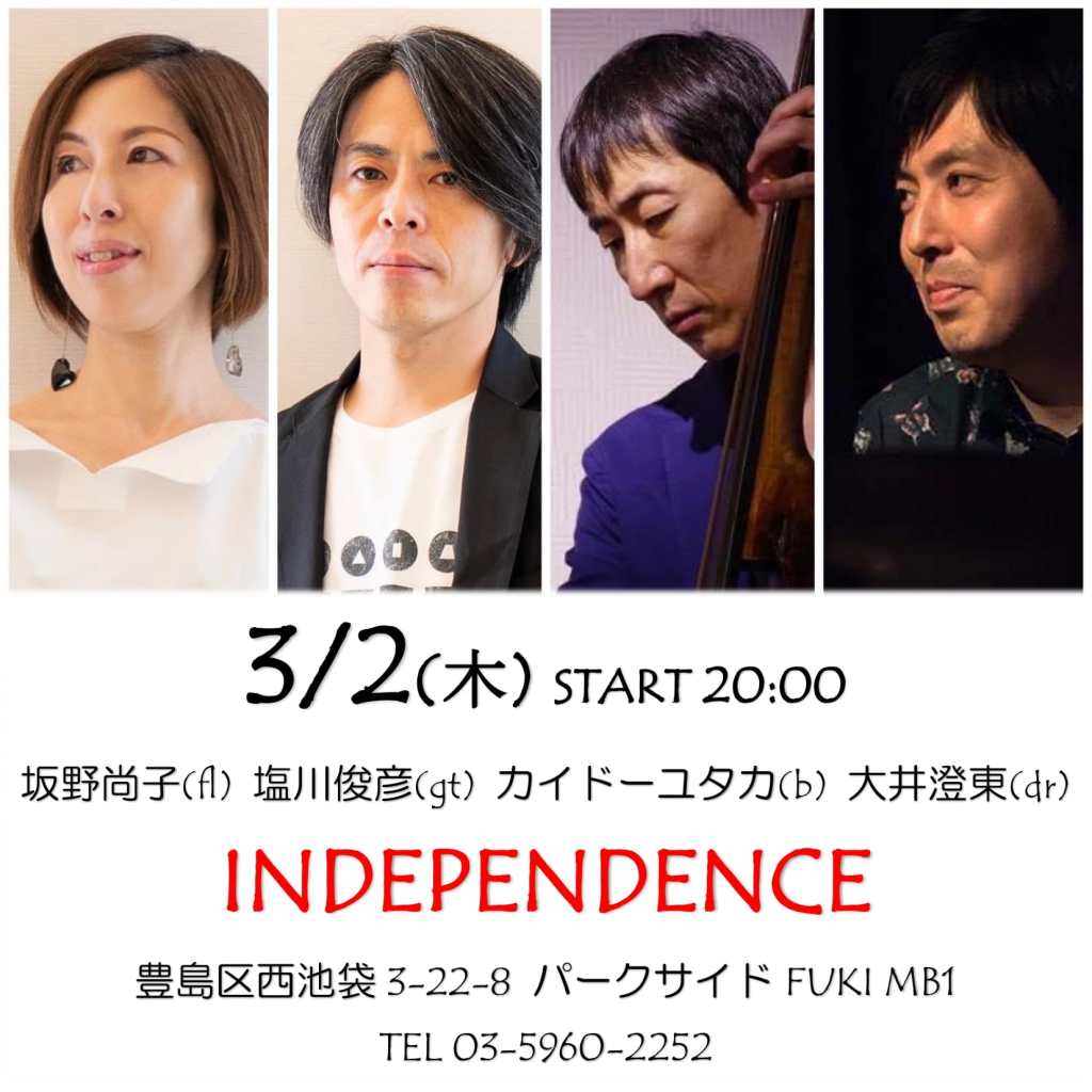 坂野尚子(fl) 塩川俊彦(gt) カイドーユタカ(b) 大井澄東(dr)