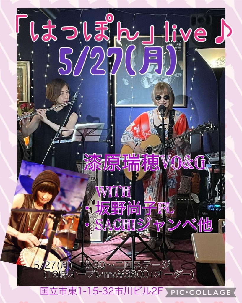 漆原瑞穂(vo、gt) SACHI(djembe) 坂野尚子(fl) MC¥3300