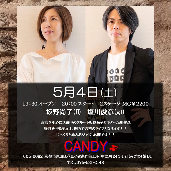 昨年に引き続き京都の老舗ジャズクラブCANDYさんに出演させていただきます😊