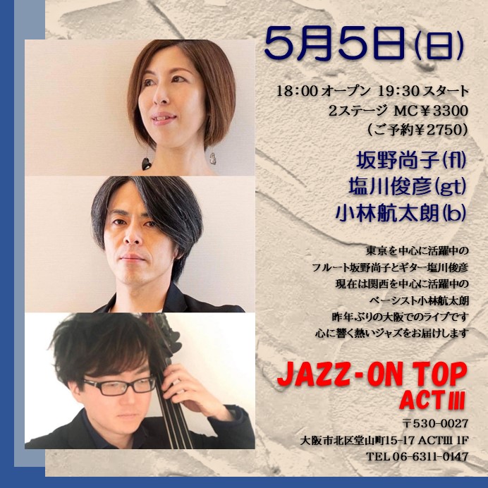 坂野尚子(fl) 塩川俊彦(gt) 楠直孝(pf)